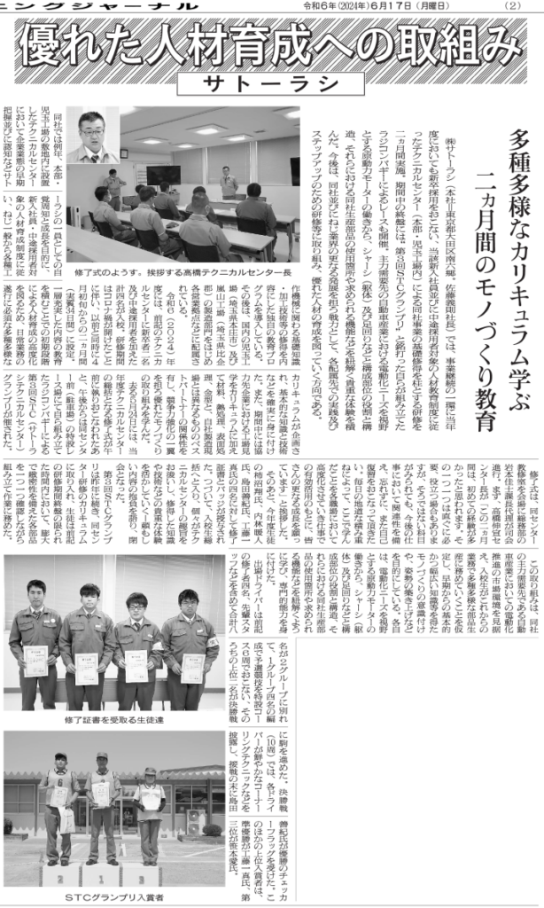 2024年6月17日発行の「ファスニングジャーナル」にて、弊社が紹介されました。この記事では、当社の人材育成に関する取り組みが高く評価され紹介されています。